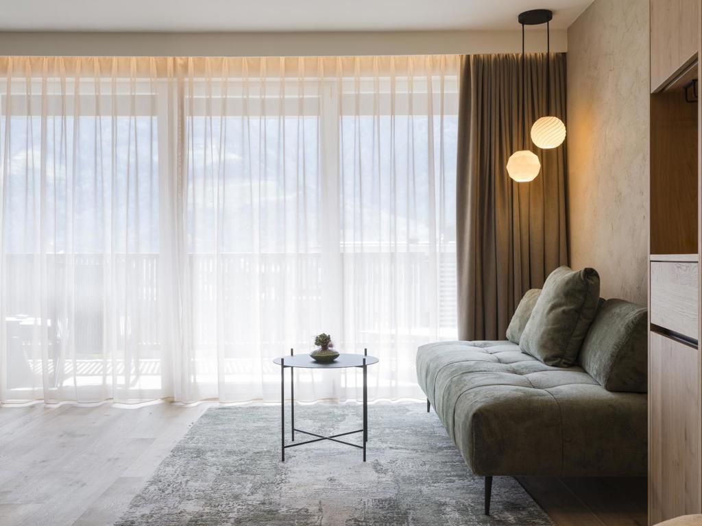 Wir haben Dolce Vita und das federleichte Lebensgefühl Südtirols eingefangen und in einer ganz besonderen Suite hochleben lassen. Unsere Dolce Vita Suite begeistert mit exklusiv ausgestattetem Wohnraum mit großer Kuschelecke, Holzboden, Naturholzmöbeln, großem, separatem Kinderzimmer mit einem Doppelbett und einem hochwertigem Couchbett für eine zusätzliche Person, modernem Badezimmer mit großer Walk-In-Dusche, Doppelwaschbecken, separatem WC, Minibar, Safe, 2 Flatscreen TV, Telefon, kostenlosem WLAN, großem Südbalkon mit Daybed, Garagenplatz und Klimaanlage.