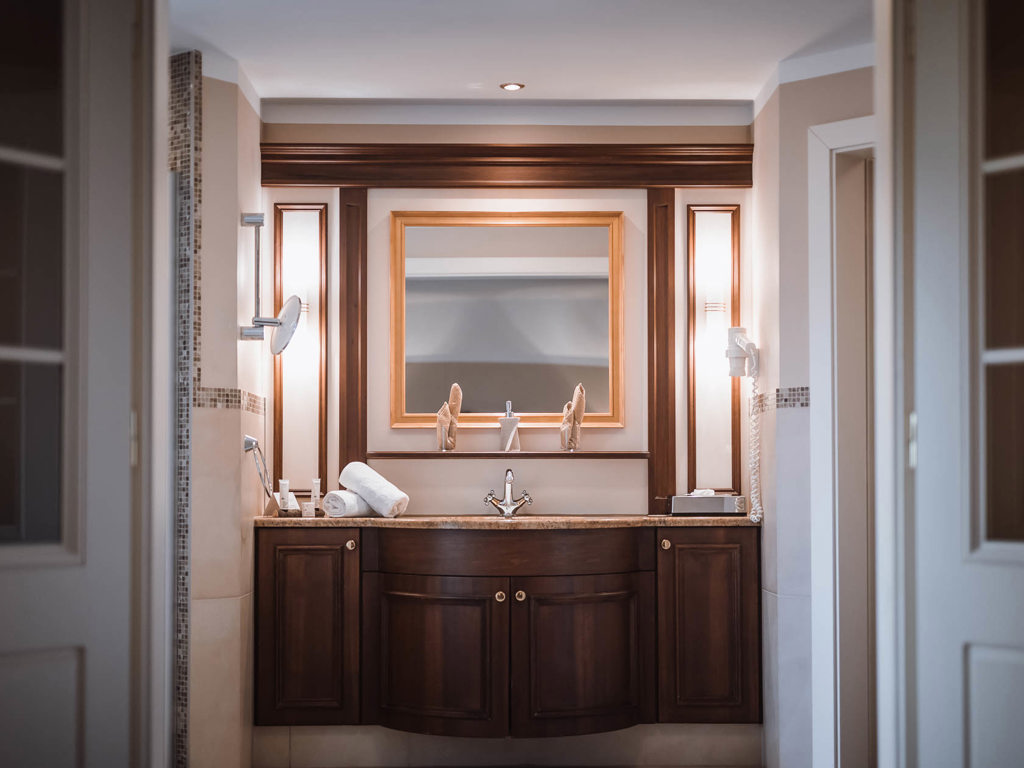 40 m², große Fensterfronten, französischer Balkon, Holzboden, gemütliche Sitzecke, Badezimmer mit Badewanne und Dusche, WC, Bidet, Haartrockner, Safe, Minibar, Nespresso-Maschine, Telefon, Schreibtisch, Flat Sat-TV, kostenloser WLAN Zugriff, Wellnesstasche mit Bademänteln und Handtüchern