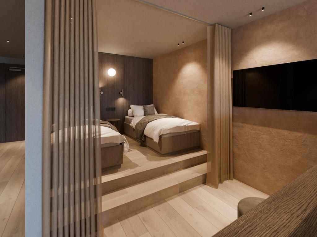 92 m², Kronplatz-Blick ohne Balkon, Holzboden, luxuriöser Wohnraum, zwei Schlafzimmer und Badezimmer mit Dusche und WC (1 mit Badewanne), Tages-WC, Bidet, Haartrockner, Safe, Minibar, Nespresso-Maschine, Telefon, Schreibtisch, Flat Sat-TV, kostenloser WLAN Zugriff, Wellnesstasche mit Bademänteln und Handtüchern
